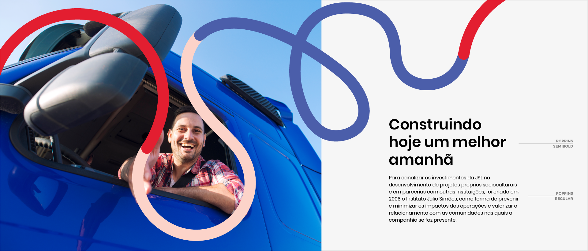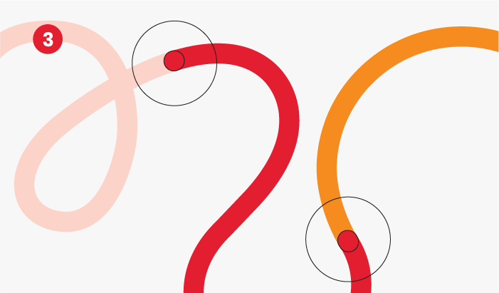 Um grafismo que explora o conceito de caminhos e sua relação com a mobilidade, o transporte e a construção de futuro melhor.