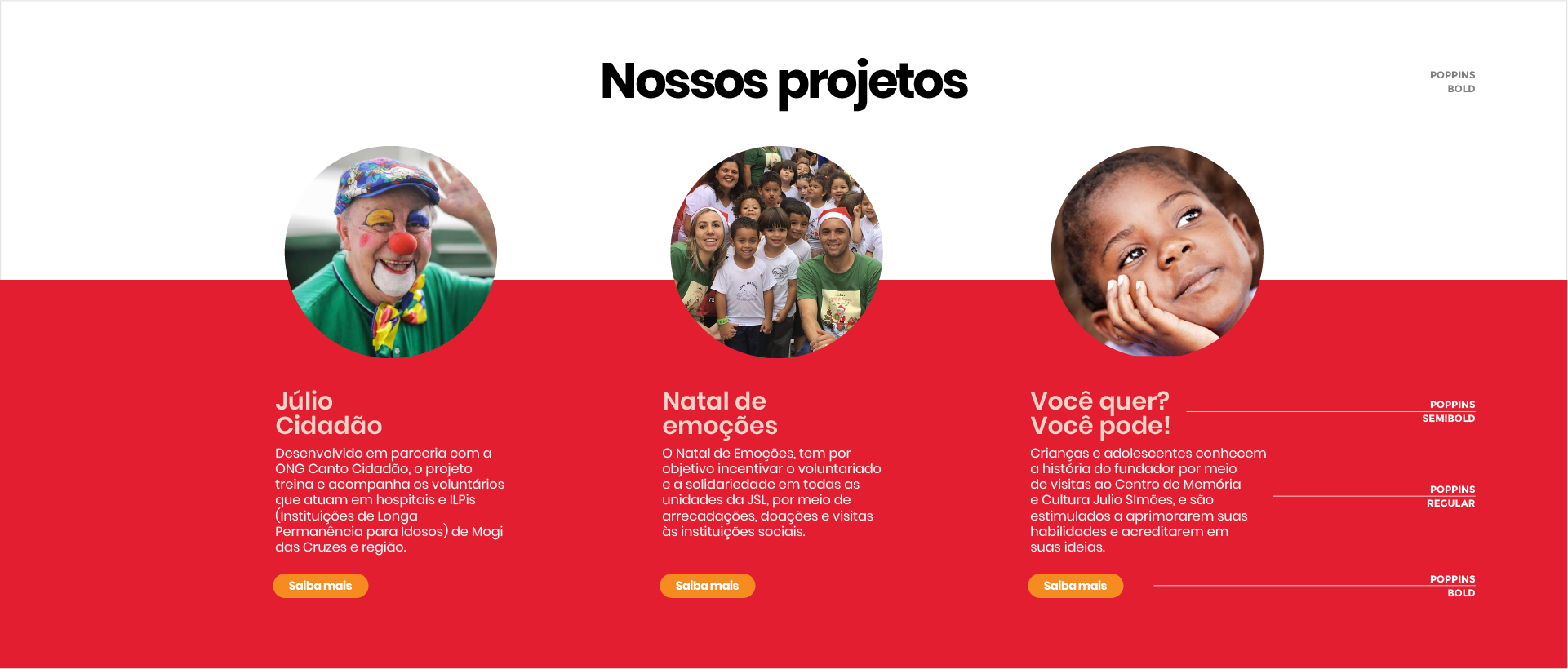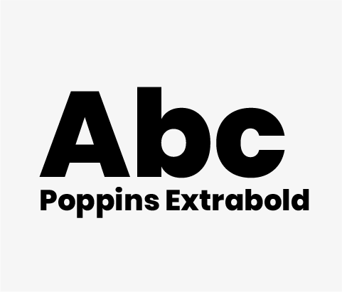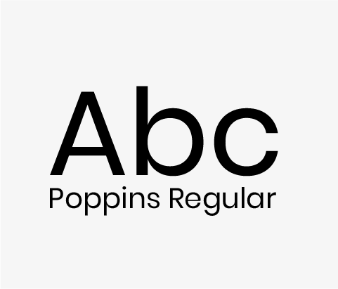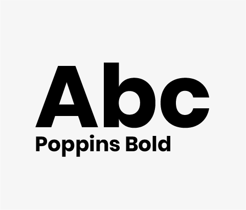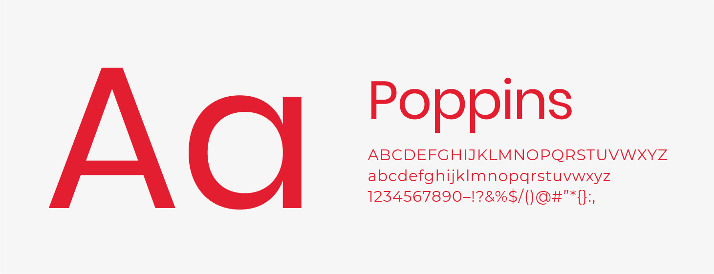 A Poppins foi escolhida pela sua variedade de pesos e versatilidade, tanto no ambiente digital quanto no impresso. Todos os pesos podem ser usados em títulos, chamadas, textos de apoio, subtítulos, destaques de informação.