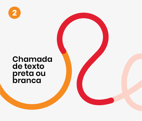 Para que o grafismo sempre seja o ponto de foco e cor da peça, as chamadas de textos entram com neutralidade (ou preto ou branco).