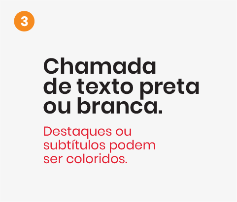 O uso de cor nas tipografias só acontece como recurso, caso o algum conteúdo necessite de destaque.