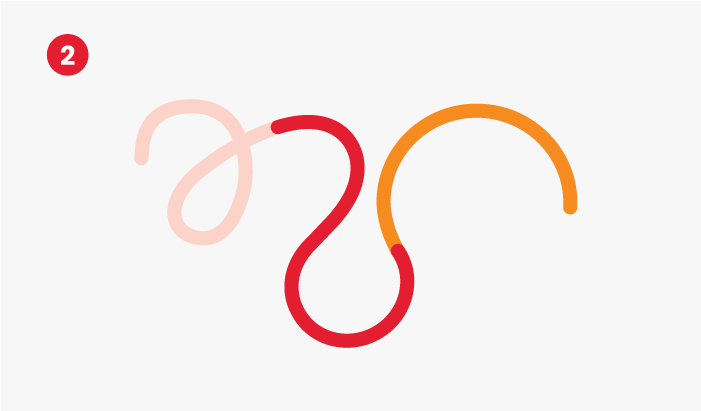 O grafismo da identidade foi construído a partir de diversas formas orgânicas que, quando conectadas, criam diferentes caminhos.
